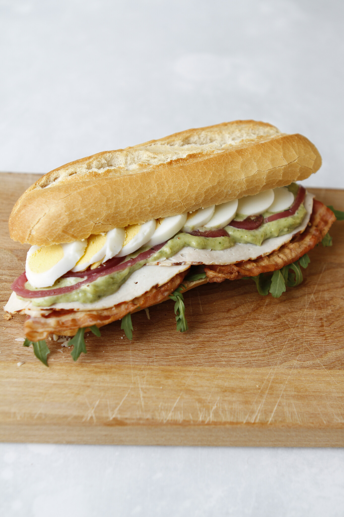 Luxe Kip-Bacon belegd met kipfilet, bacon, pesto spread, ei, slamelange en rode chutney ui