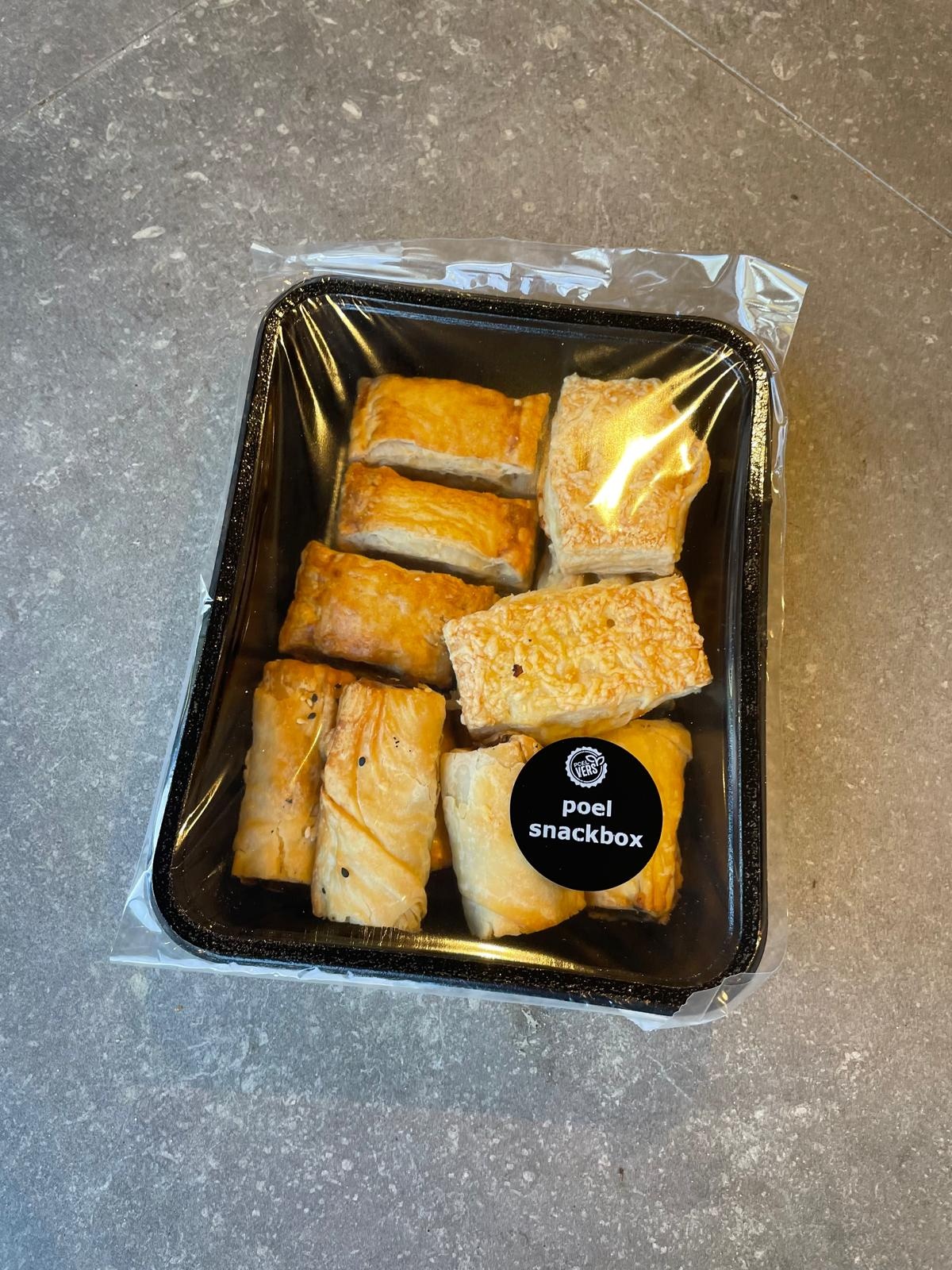 Terug Snackbox Terug naar overzicht € 7,99 Incl. btwSnackbox mini saucijzen, kaasbroodjes & boreksAantalToevoegen aan winkelwagenRecent bekekenToevoegen aan winkelwagen Snackbox € 7,99 Incl. btw